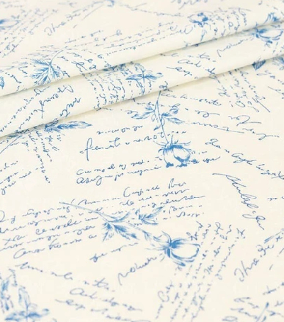 Quiltstof geschreven tekst en roosjes - Yuwa 105S2